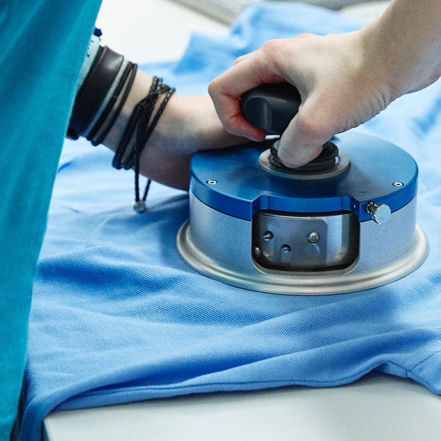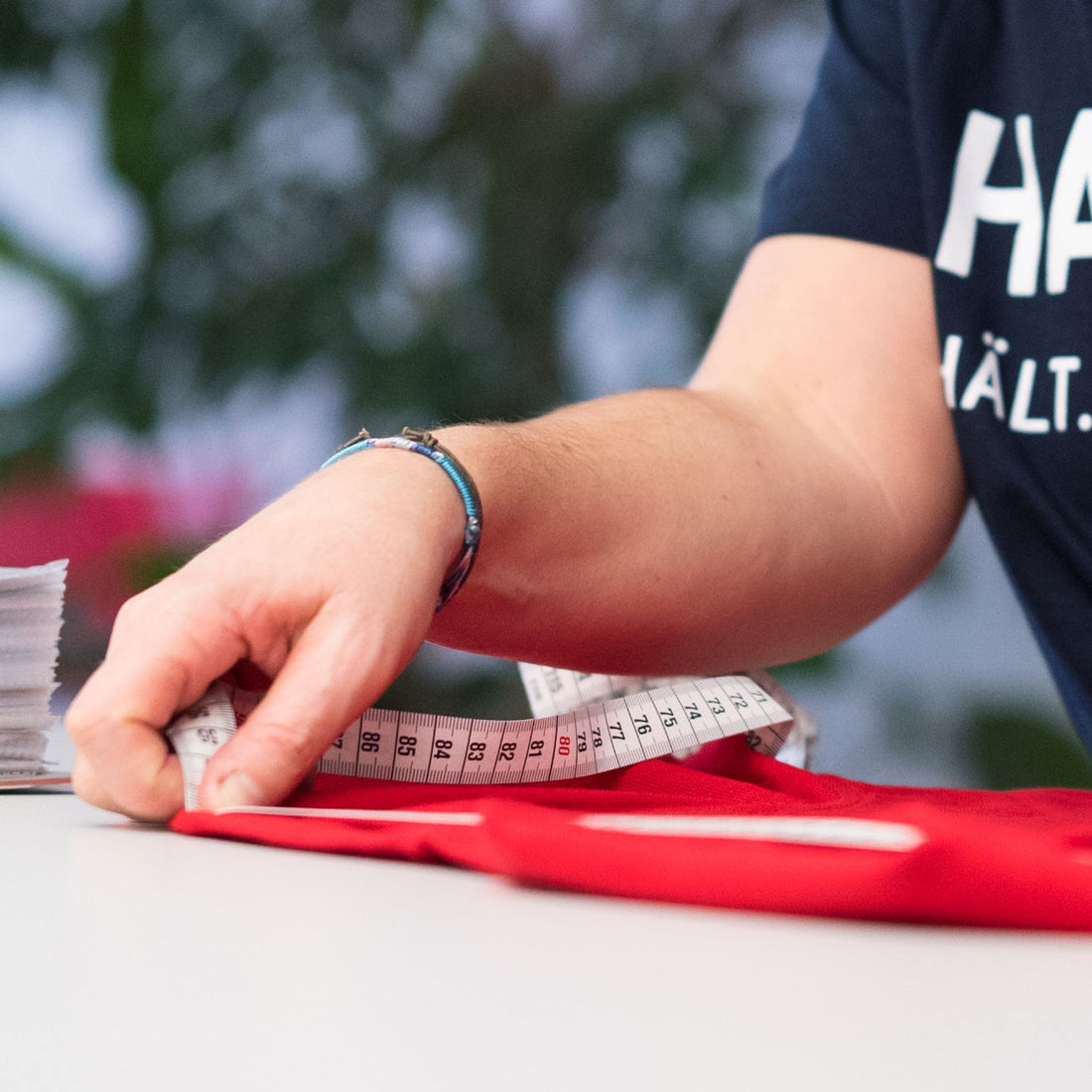 The textile weight of each batch of fabric is checked before and after dyeing using a circular cutter and standardised fabric samples. Only if the weight matches the target specifications can the batch move on to the next production stage.