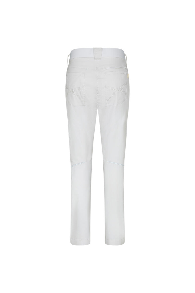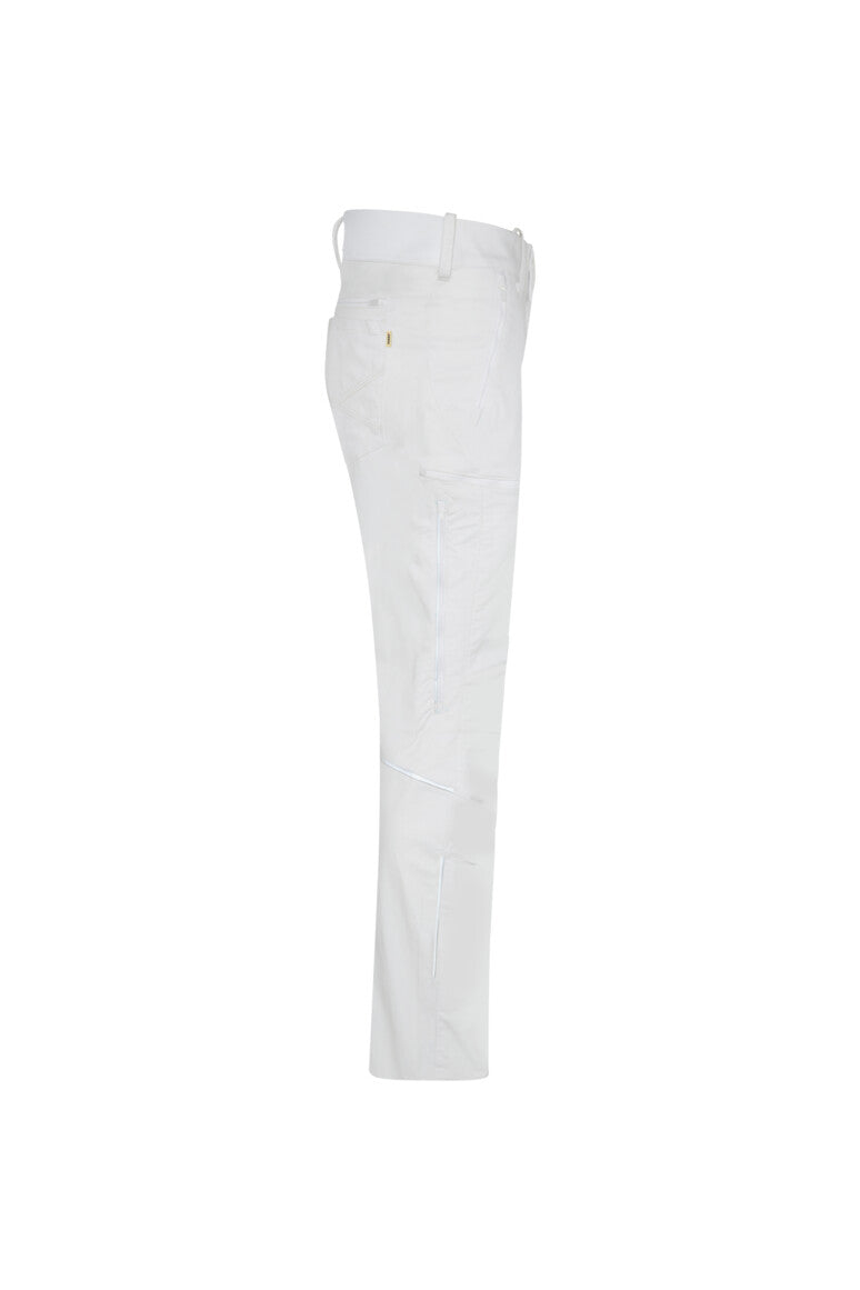 Extremely robust, functional trousers with a stretch waistband created by a durable knit insert at the back. Safety button, zip fastener, belt loops, sewn-in reflective tape, embroidered back pockets, and an ergonomic, pre-shaped fit. Two slide-in side pockets, a pocket on the right thigh, plus an additional right back pocket, each featuring a zip fastener and zip garage. Each leg has a ventilation opening with a zip fastener and zip garage. All zip fasteners are by YKK®. Made from an extremely robust material blend of cotton, GRS-certified recycled polyester, and elastolefin. Also available as a women's model. Regular fit.