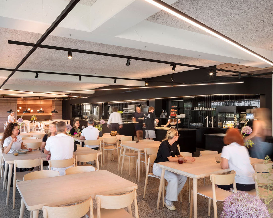 Mit viel Licht, unzähligen Pflanzen und schicken Sitzgruppen ist auch der Showroom viel mehr als eine Fläche für Warenträger.